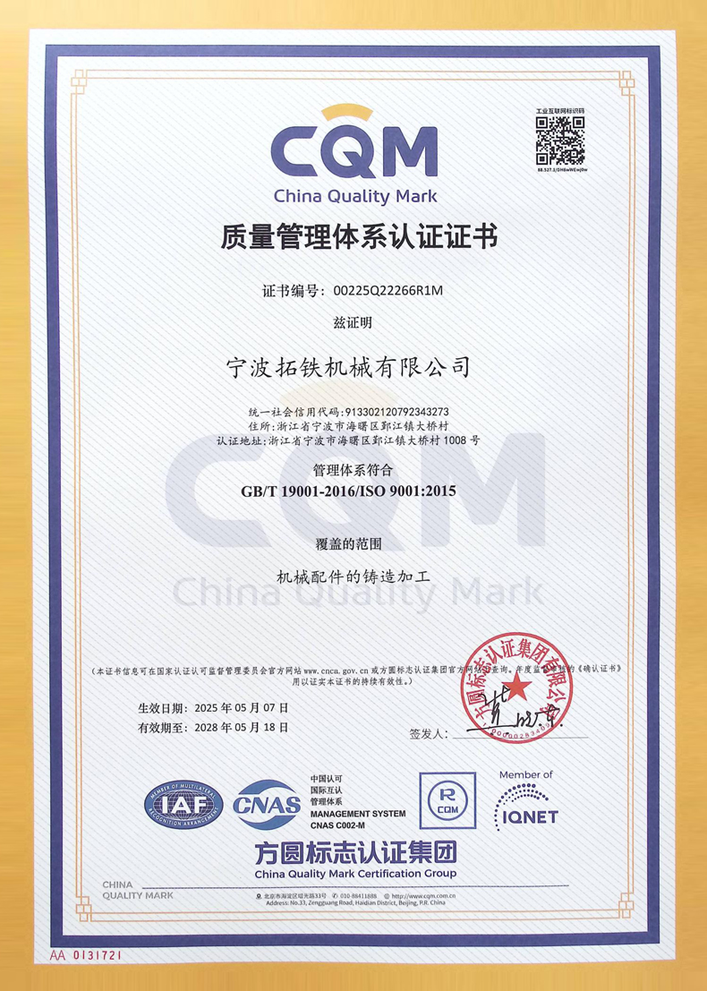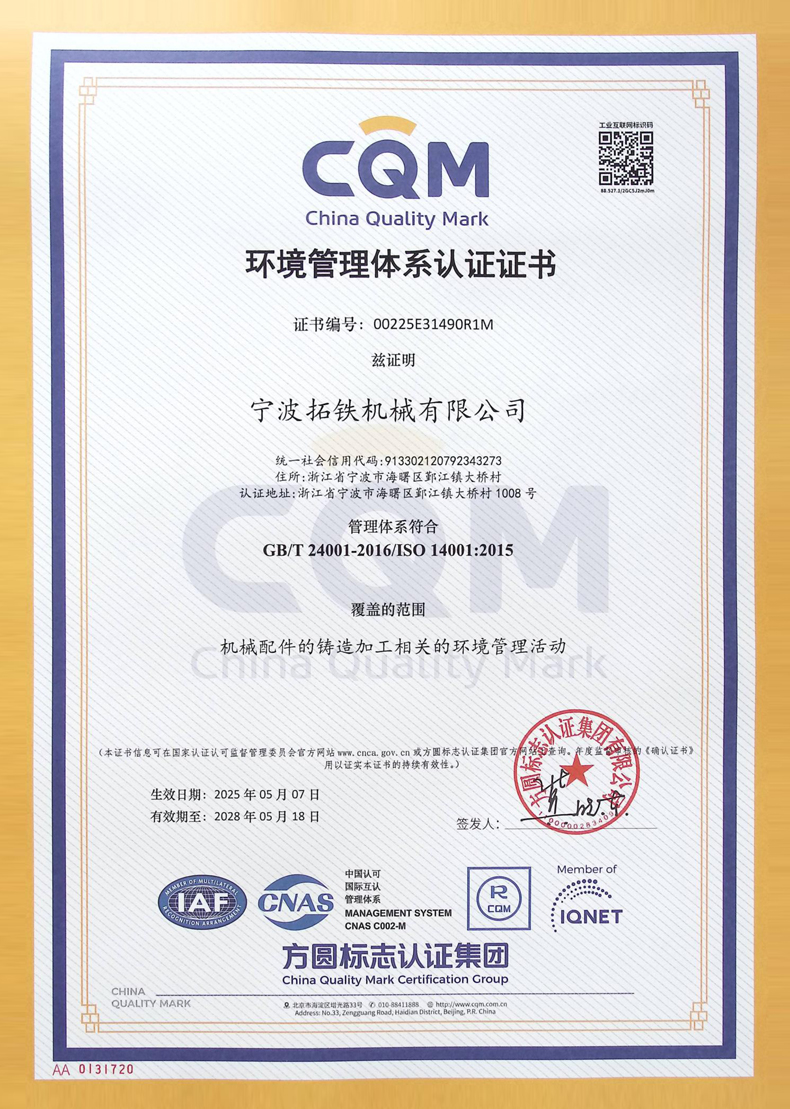 寧波拓鐵機械有限公司作為國家高新技術企業和國家科技型中小企業,專業從事鑄鐵件生產和金屬加工,位于“四明首鎮”寧波市海曙區鄞江鎮,臨近高速公路網,交通便捷,地理位置優越。企業總投資2億元人民幣,其中環保設施投入超2000萬元。在后續生....